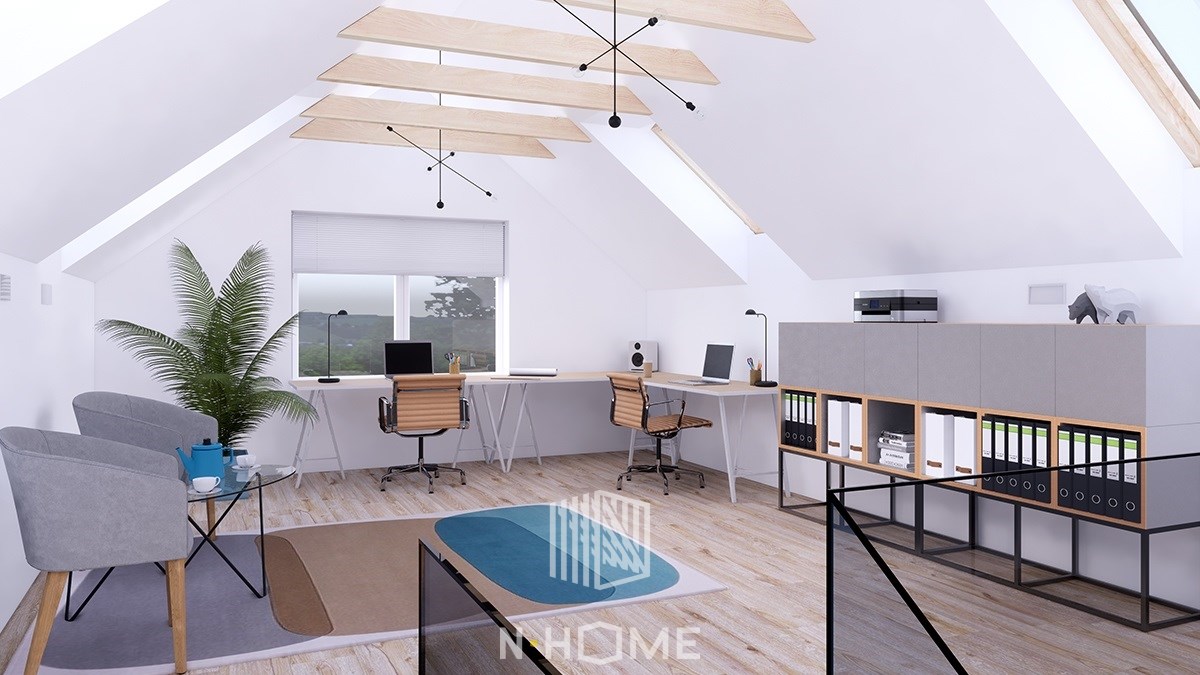 - Poddasze użytkowe, które daje szerokie możliwości aranżacyjne