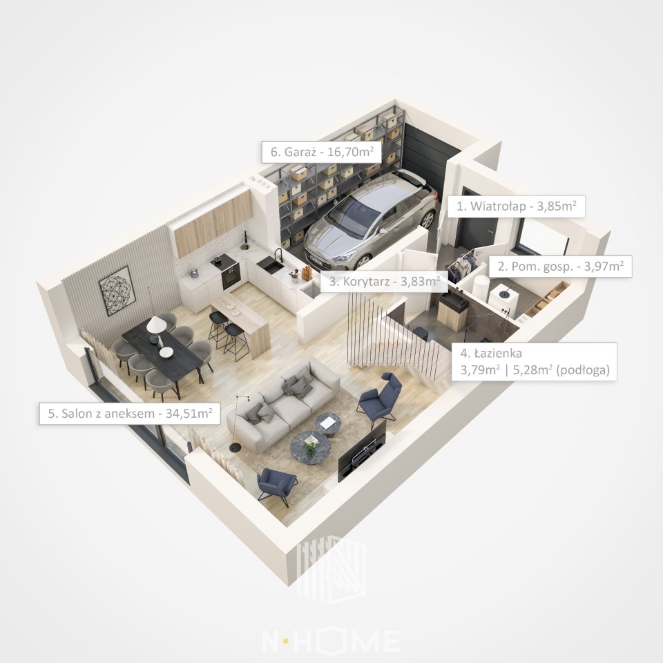 Dom ten to propozycja dla osób, które chcą połączyć nowoczesną architekturę, wysoką funkcjonalność i spokojną lokalizację. Przemyślany układ, wysoka jakość wykonania oraz energooszczędne rozwiązania sprawiają, że to inwestycja na lata.