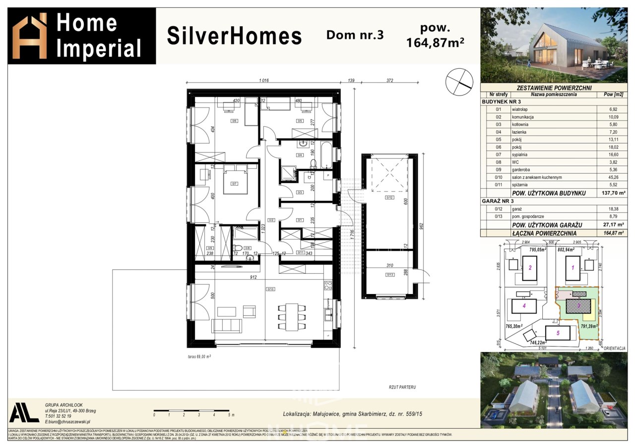 Nowoczesny dom parterowy z garażem | 164,87 m² | Budynek nr 3