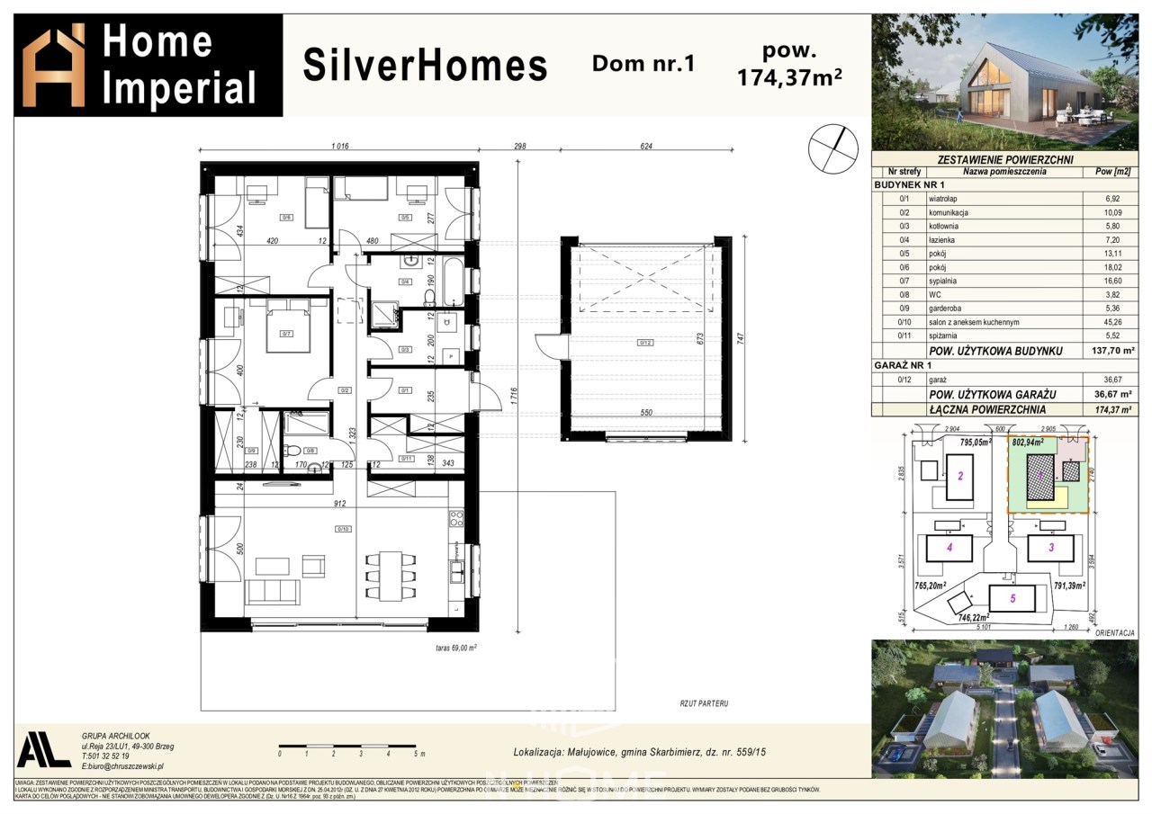 Na sprzedaż przestronny, komfortowy dom parterowy z garażem, o łącznej powierzchni 174,37 m² (w tym garaż 36,67 m²). Nieruchomość została zaprojektowana z myślą o wygodzie i funkcjonalności, oferując układ pomieszczeń, który sprawdzi się zarówno dla rodzin, jak i osób poszukujących przestrzeni i nowoczesnych rozwiązań.