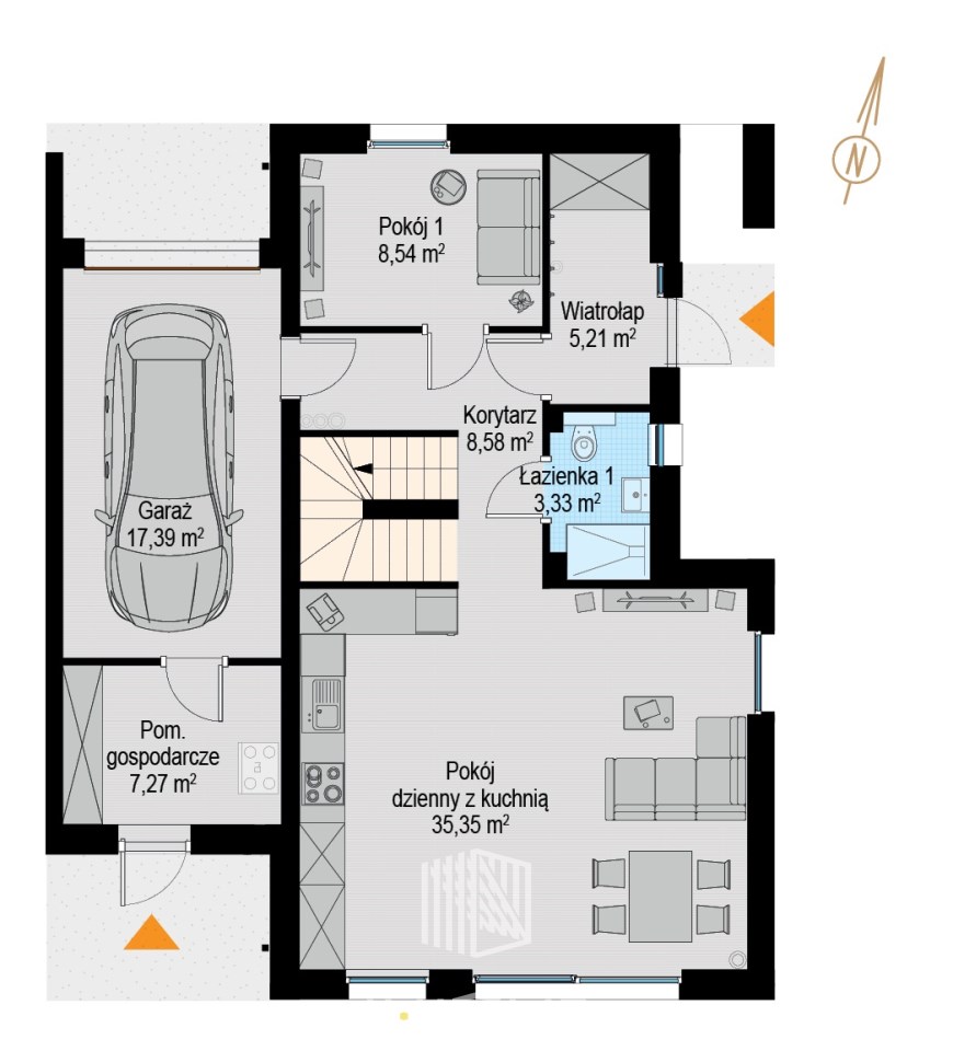 garaż w bryle budynku + dodatkowe miejsce postojowe