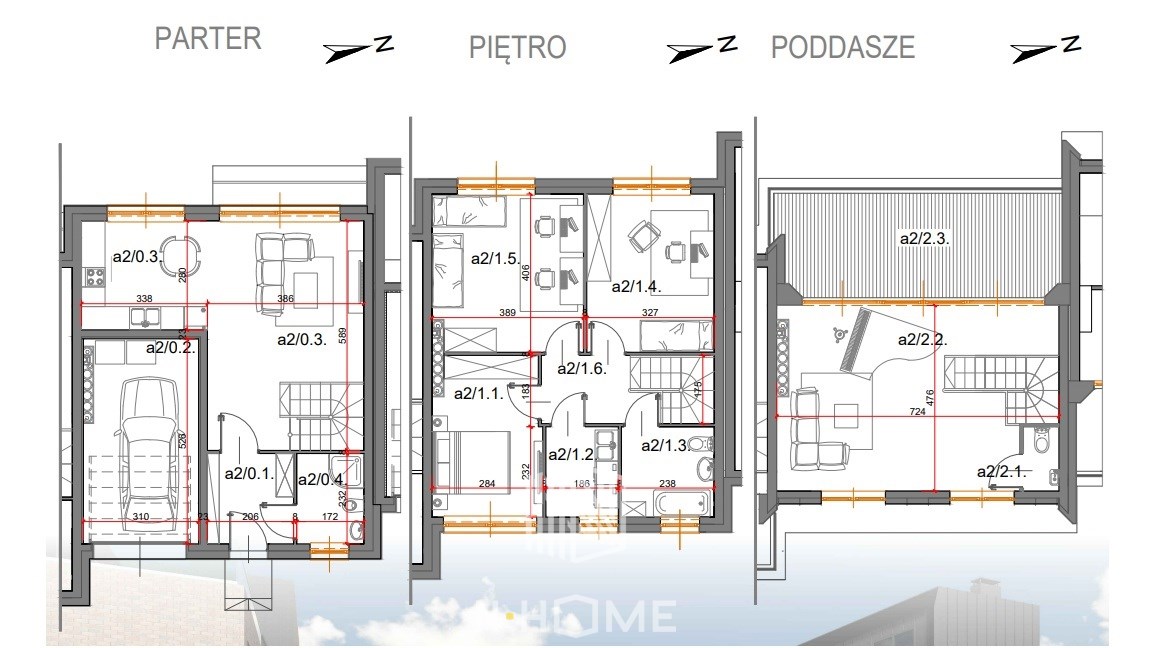 Przemyślany układ z trzema kondygnacjami zapewnia komfortowy podział na część dzienną, prywatną i dodatkową przestrzeń do indywidualnej aranżacji na poddaszu.