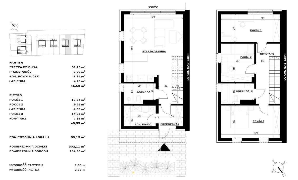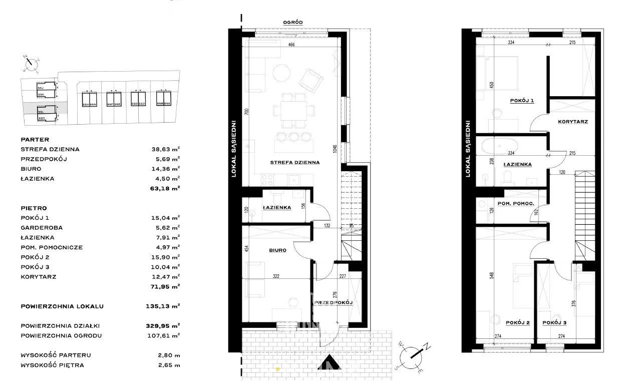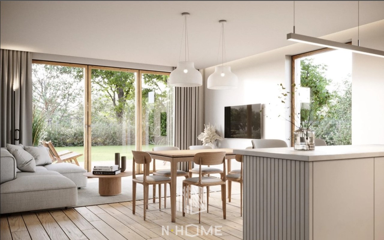Dom o powierzchni 135,13 m², z piękną strefą dzienną, 3 sypialniami, gabinetem i ogrodem o powierzchni 107,61 m², to idealna propozycja dla rodzin, osób pracujących zdalnie oraz tych, którzy chcą połączyć miejski komfort z ciszą i zielenią.