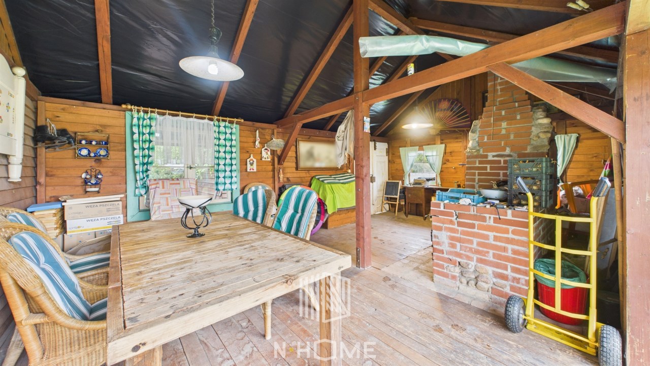 Działka o powierzchni 2000 m² jest w pełni zagospodarowana i ogrodzona (murowane ogrodzenie z elementami siatki), co zapewnia prywatność i bezpieczeństwo. Duża przestrzeń pozwala na relaks na świeżym powietrzu, uprawę ogrodu, organizację spotkań rodzinnych, a także zabawę dla dzieci. Nieruchomość sąsiaduje bezpośrednio z lasem, co tworzy wyjątkowy klimat spokoju i kontaktu z naturą.