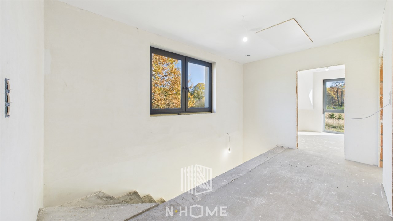 Dom znajduje się tuż pod lasem. Otoczenie jest absolutnie ciche i malownicze – to przestrzeń, gdzie czas zwalnia, a każdy spacer staje się chwilą wytchnienia.