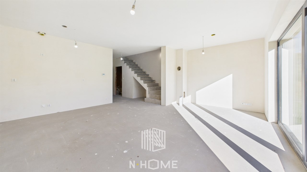 W salonie przygotowano miejsce na kominek, który w połączeniu z naturalnym krajobrazem za oknem tworzy atmosferę ciepła i domowego spokoju.