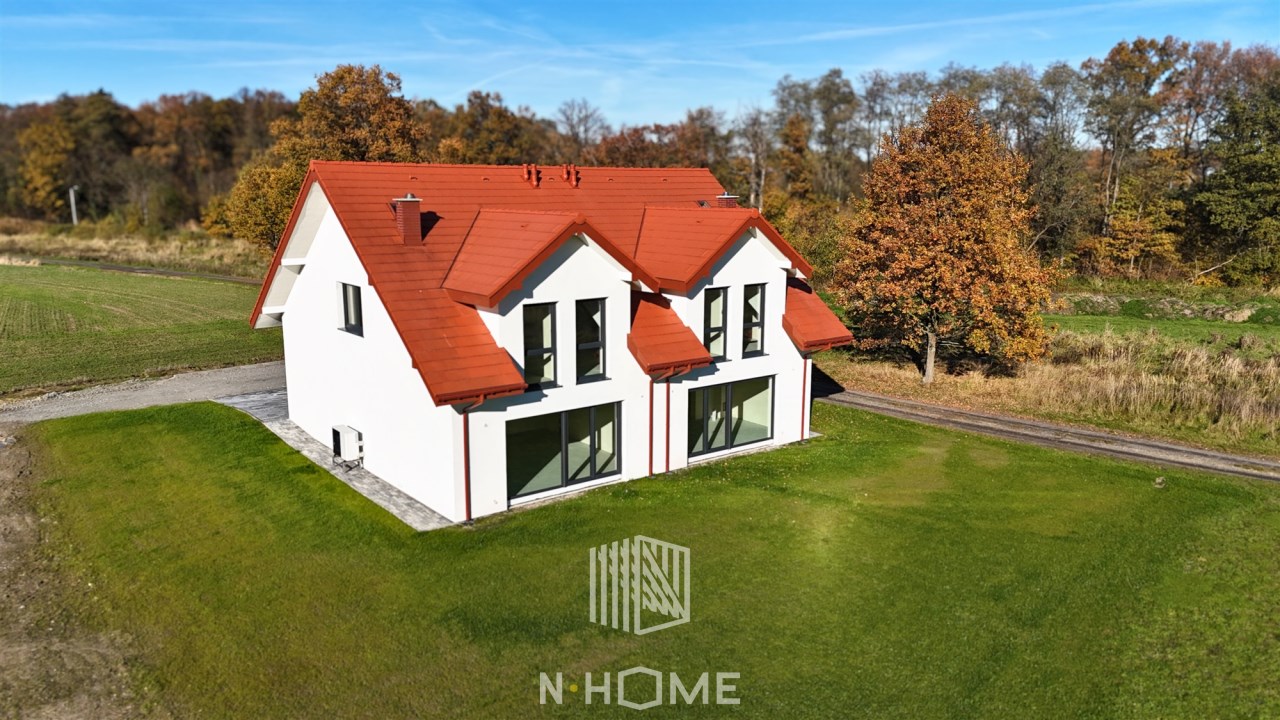 Dom znajduje się tuż pod lasem. Otoczenie jest absolutnie ciche i malownicze – to przestrzeń, gdzie czas zwalnia, a każdy spacer staje się chwilą wytchnienia.
