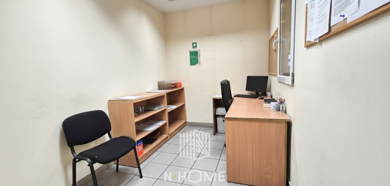 Powierzchnia: 132 m² + 52 m² (magazyn, dwa pomieszczenia biurowe, łazienka z prysznicem i wc, kuchnia, szatnia)