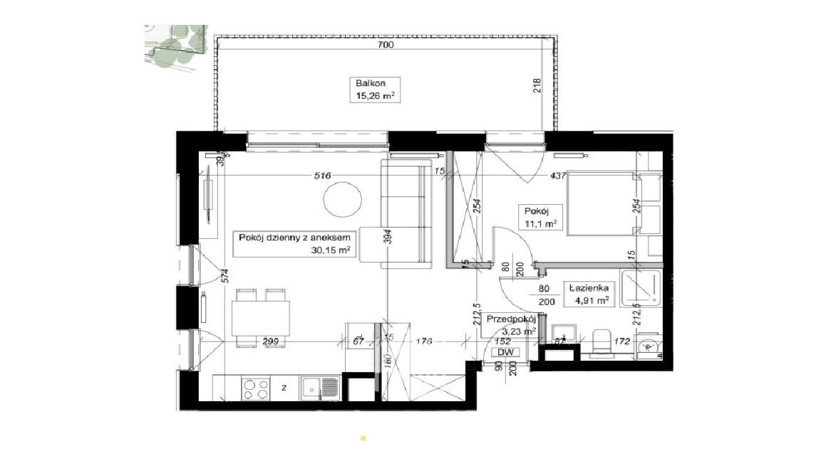 | Rodzaj kuchni | aneks kuchenny - połączony z salonem |
