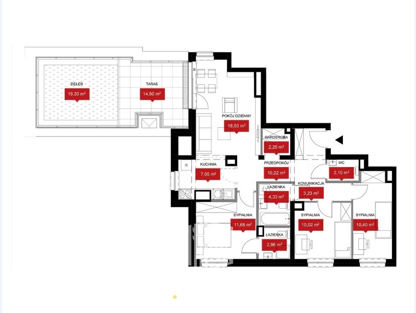 | Powierzchnia balkonów/tarasów | 34,10 m² |