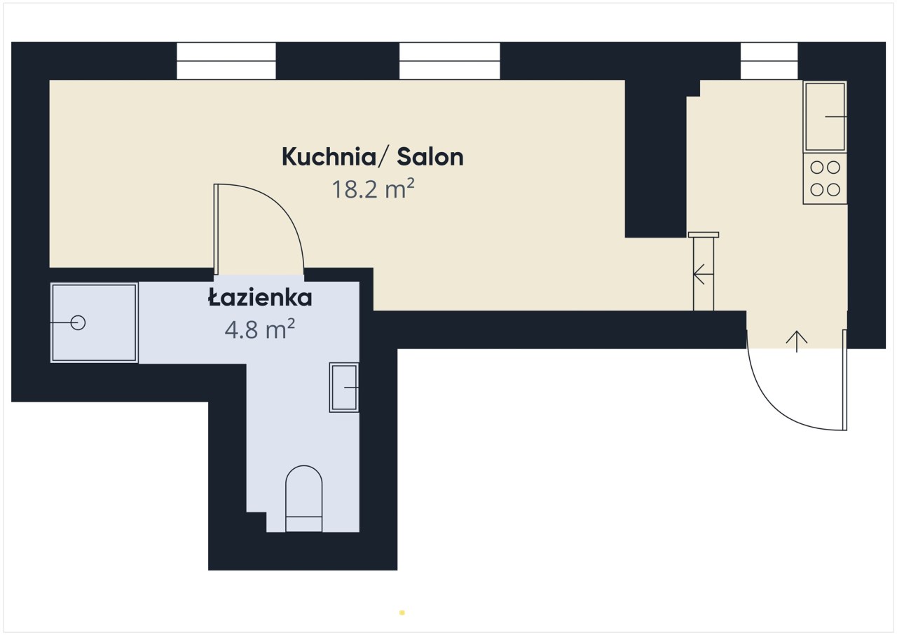 Na sprzedaż mieszkanie o powierzchni 23,36 m², położone na parterze kamienicy z około 1906 roku. Lokal składa się z pokoju, kuchni i łazienki. Okna wychodzą na zachód na wspólne podwórko, co zapewnia ciszę i prywatność. W budynku znajduje się 7 mieszkań, co gwarantuje spokojne sąsiedztwo.