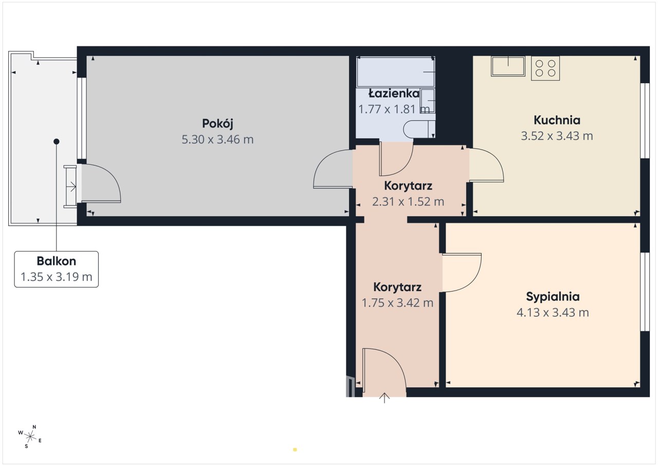 Możliwość aranżacji 3 pokoi – dzięki układowi mieszkania istnieje opcja stworzenia salonu z aneksem kuchennym oraz dwóch sypialni, co idealnie sprawdzi się dla większej rodziny.