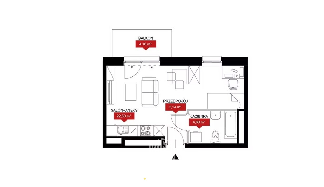 -Pokój z aneksem kuchennym 22,53m2