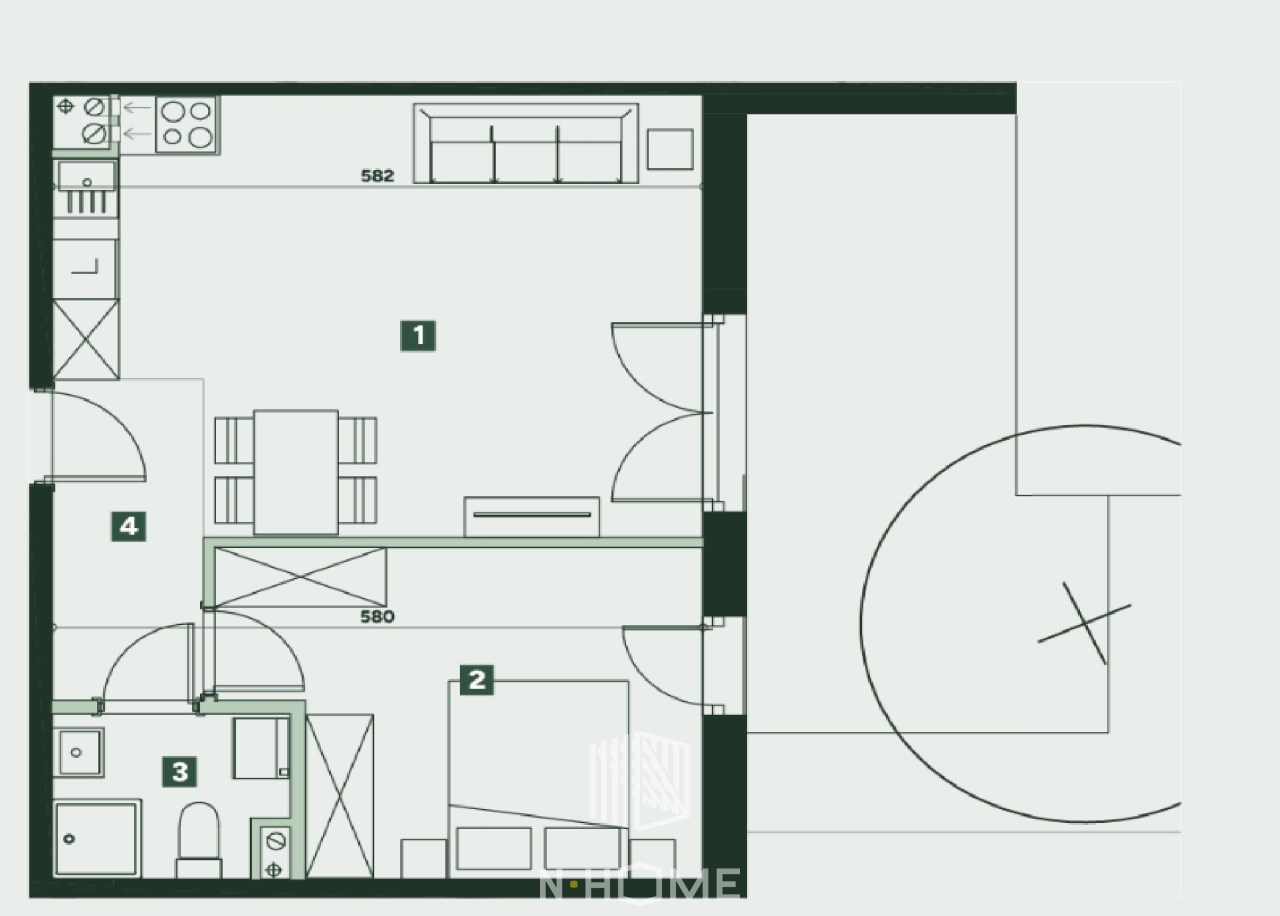 | Rodzaj kuchni | aneks kuchenny - połączony z salonem |
