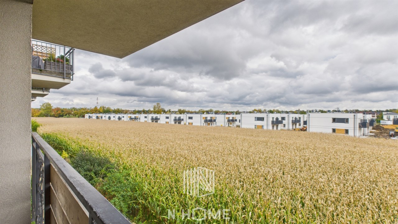 balkon z pięknym widokiem na pola i otwartą przestrzeń.