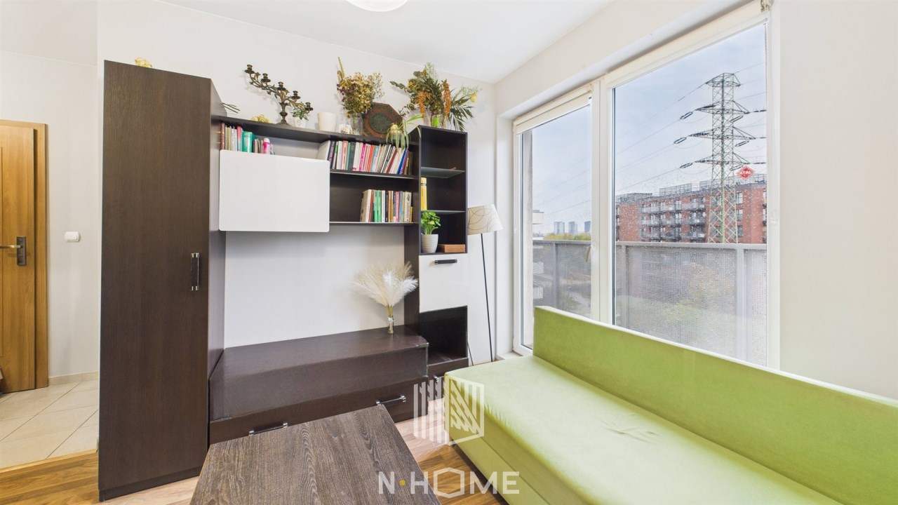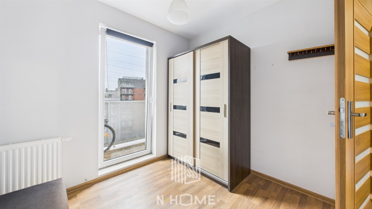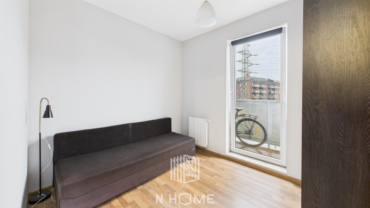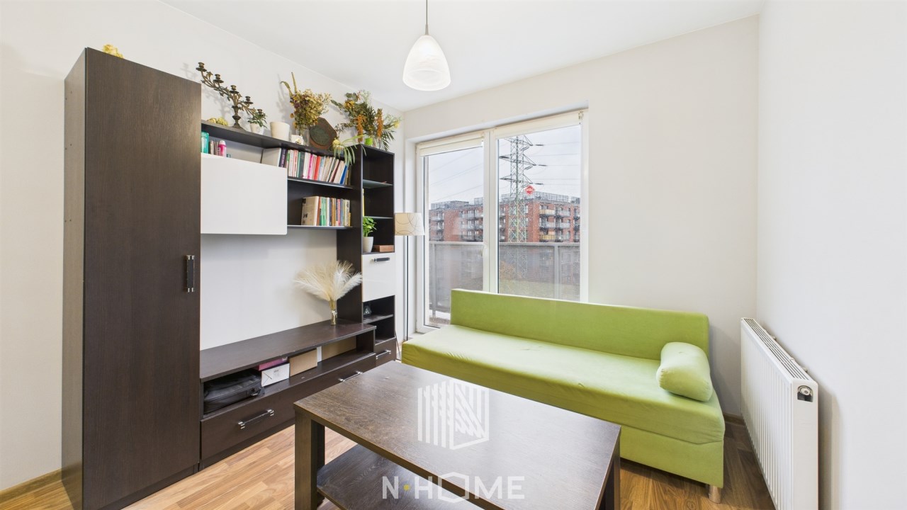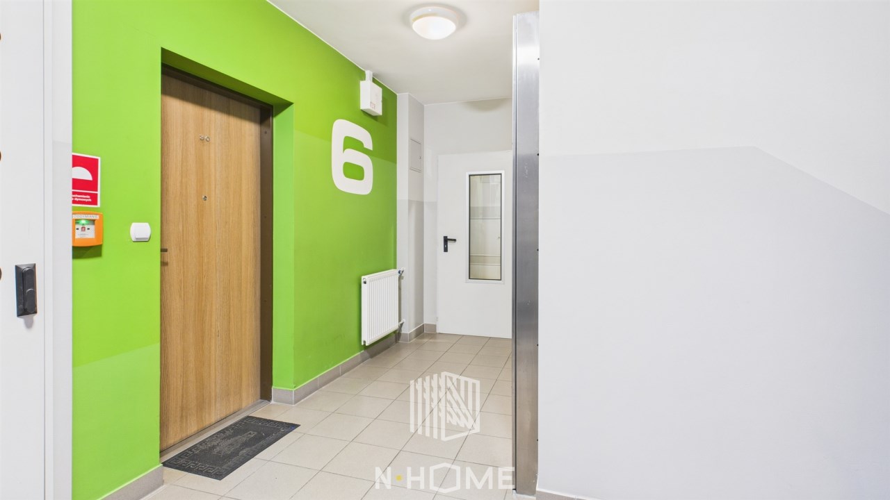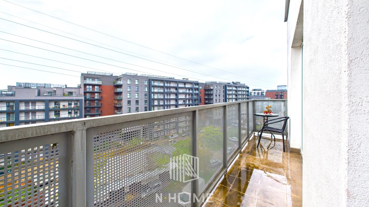 Duży balkon dostępny z obu pokoi. Mieszkanie jest ciche, a dodatkowym atutem jest fakt, że znajduje się za zamykanymi drzwiami oddzielającymi korytarz – na tej części piętra znajdują się jedynie trzy mieszkania.