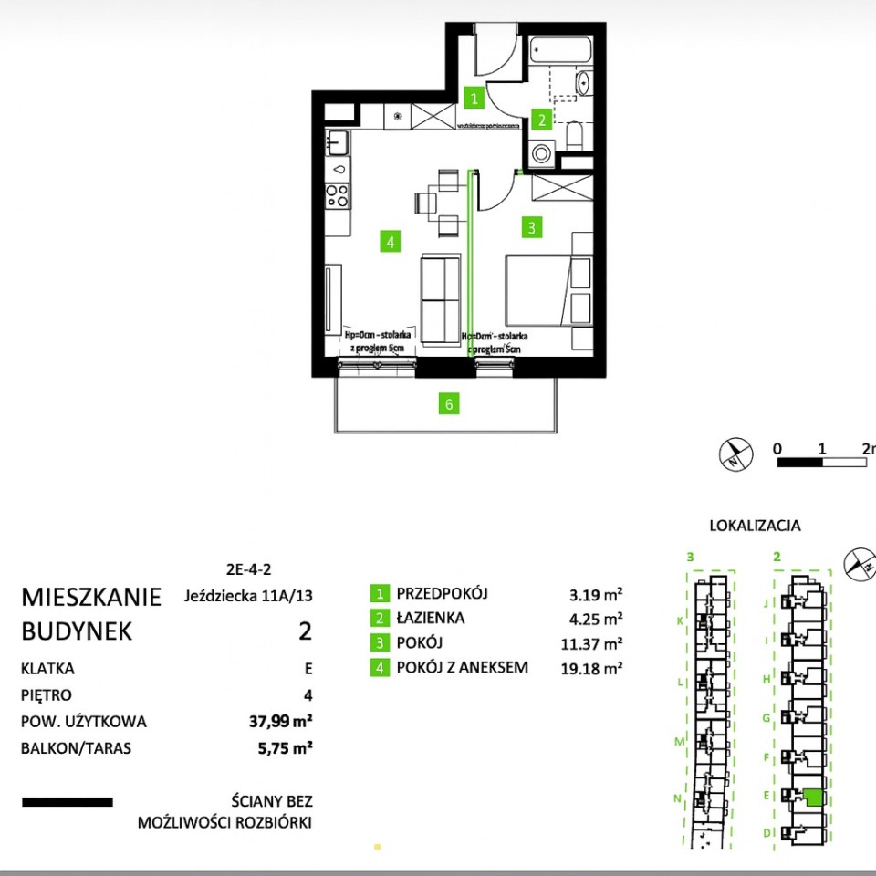 W skład mieszkania o powierzchni 37,99m² wchodzą: