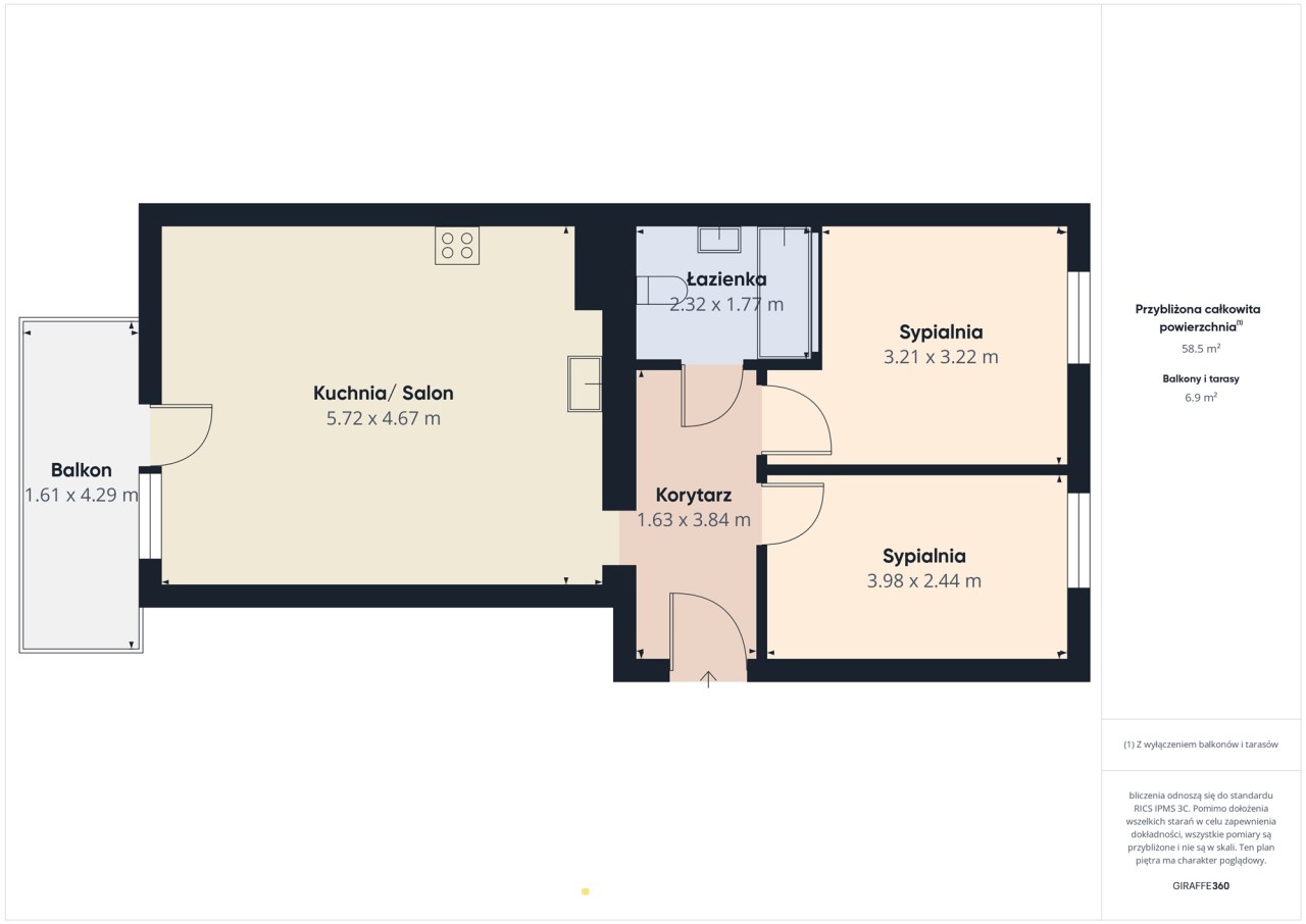 | Powierzchnia użytkowa [m2] | 58,50 m² |