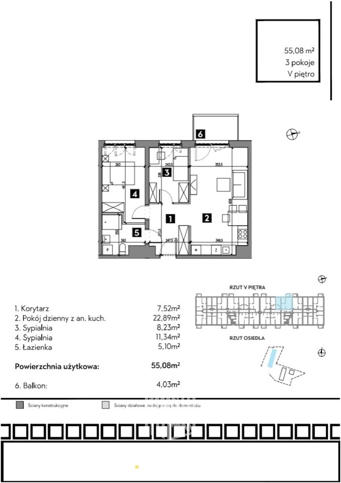| Powierzchnia użytkowa [m2] | 55,10 m² |