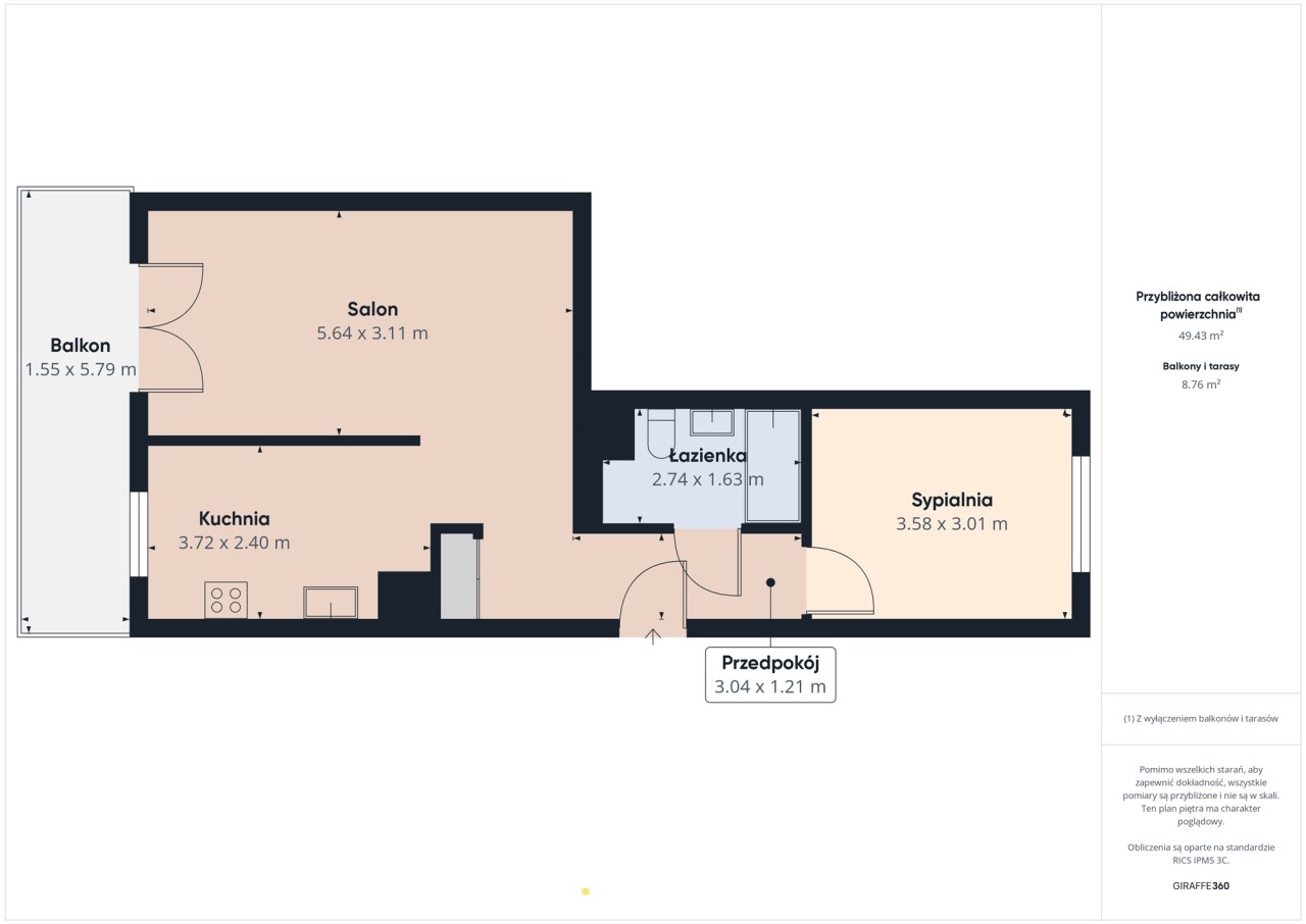 Powierzchnia balkonów/tarasów | 9,00 m² |