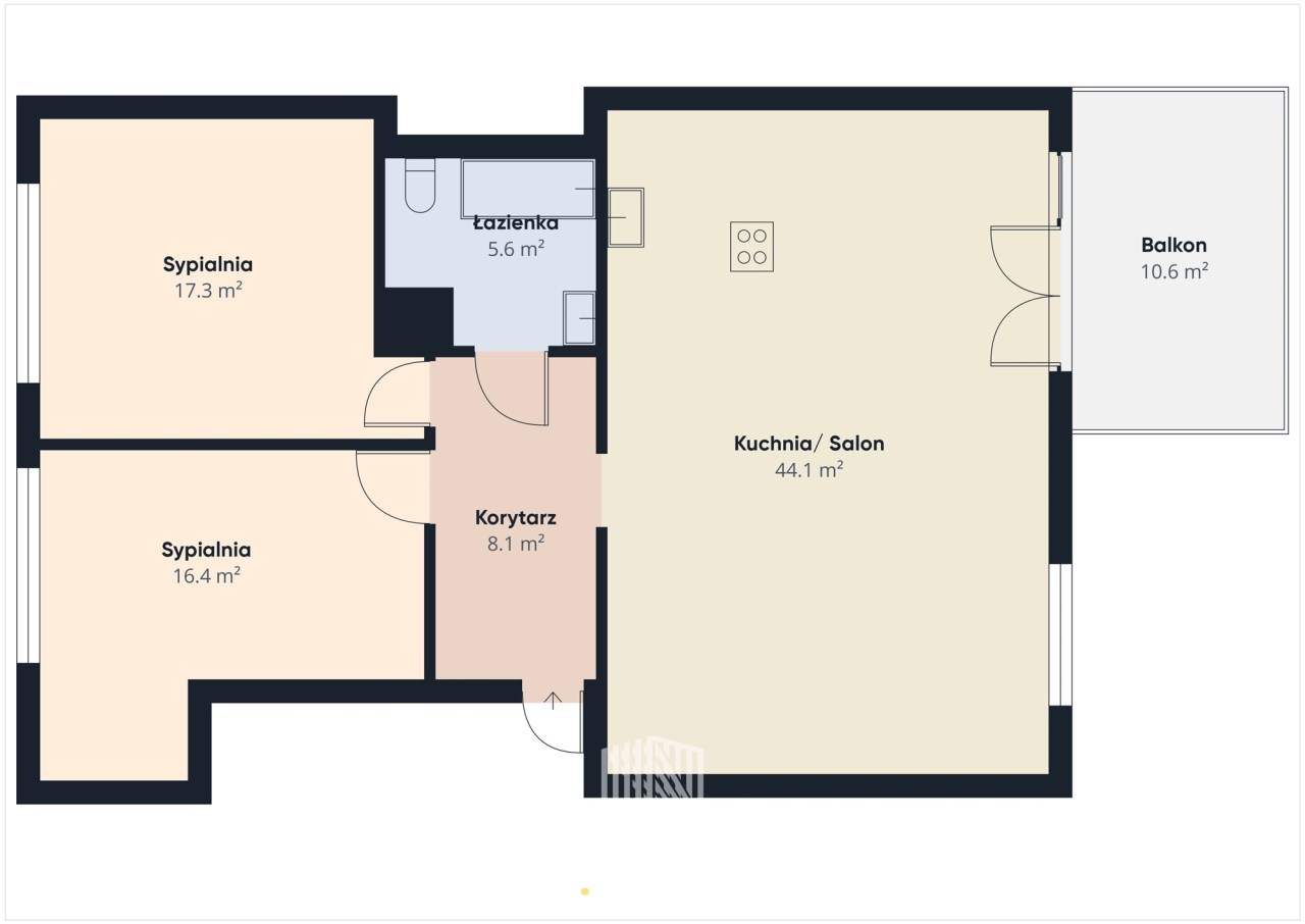2 pokoje + salon z aneksem kuchennym – z łatwością wydzielisz 3. sypialnię, dostosowując mieszkanie do swoich potrzeb