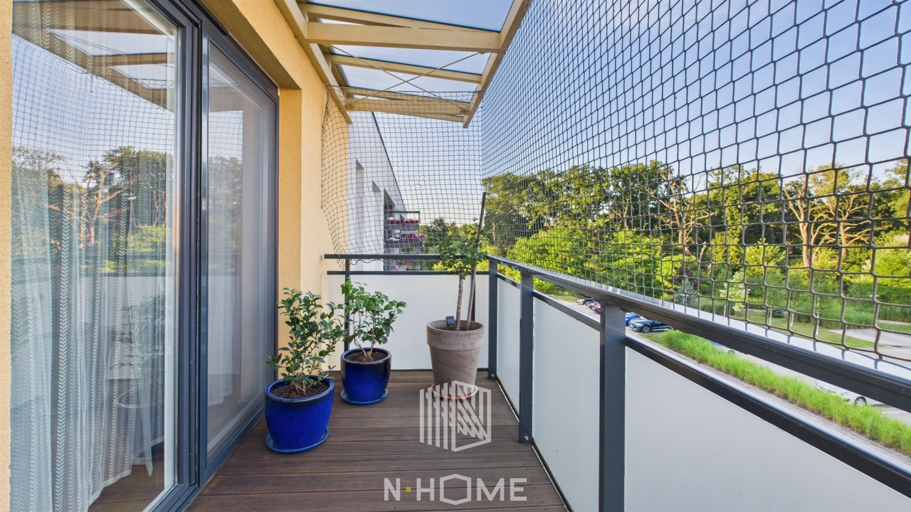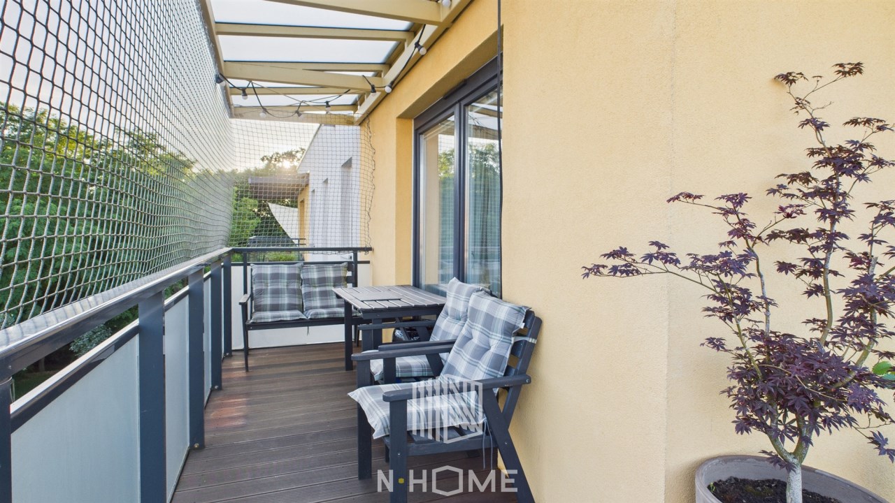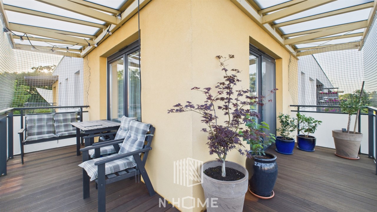 15-metrowy narożny balkon z egzotycznym drewnem bangkirai – miejsce na poranną kawę lub wieczorne wino z widokiem