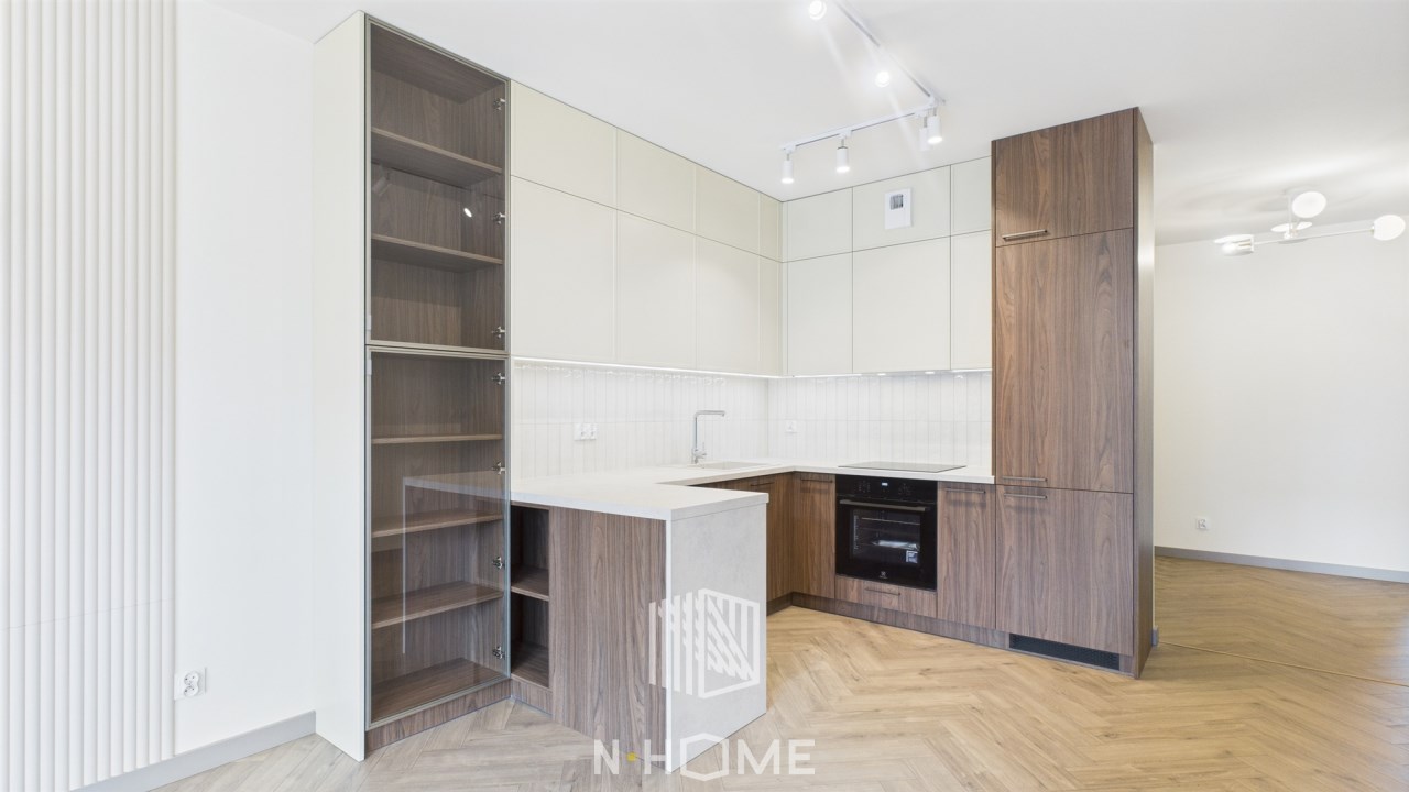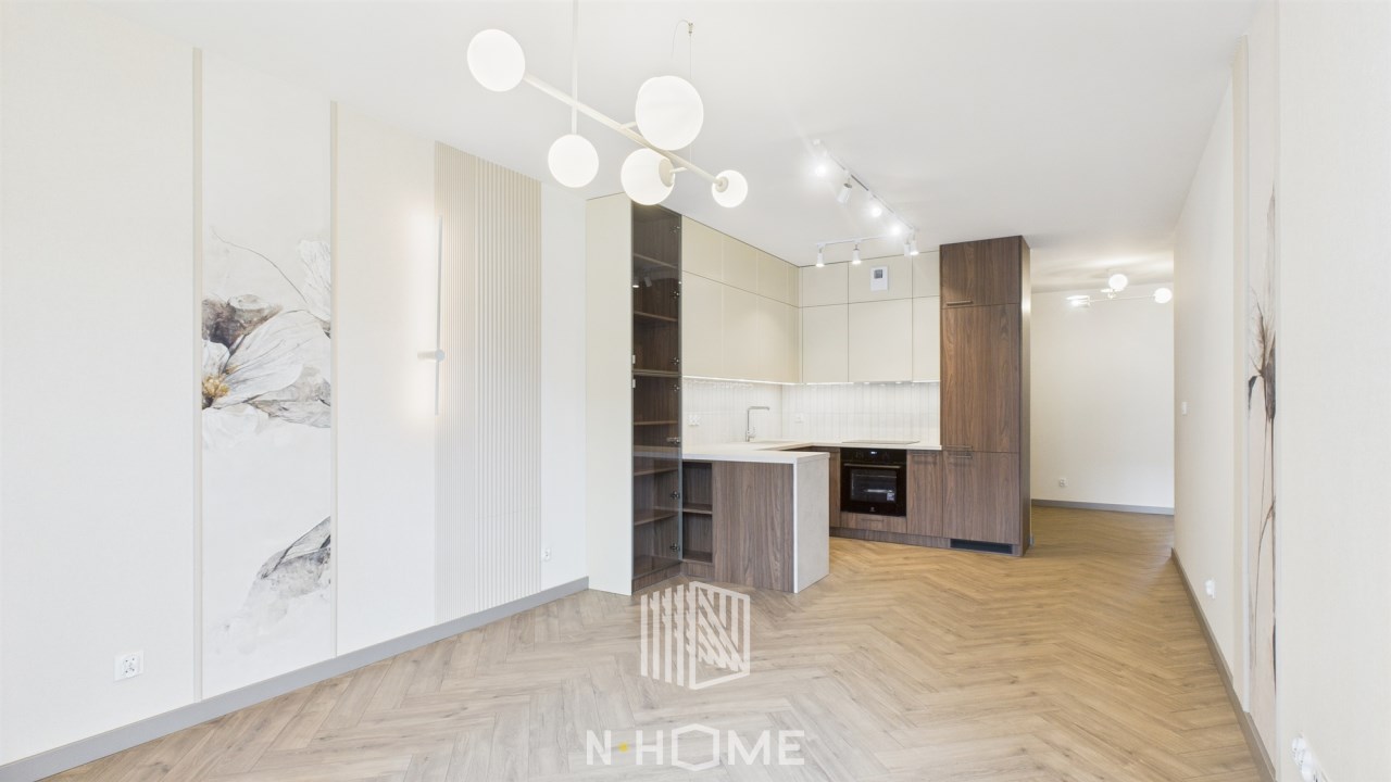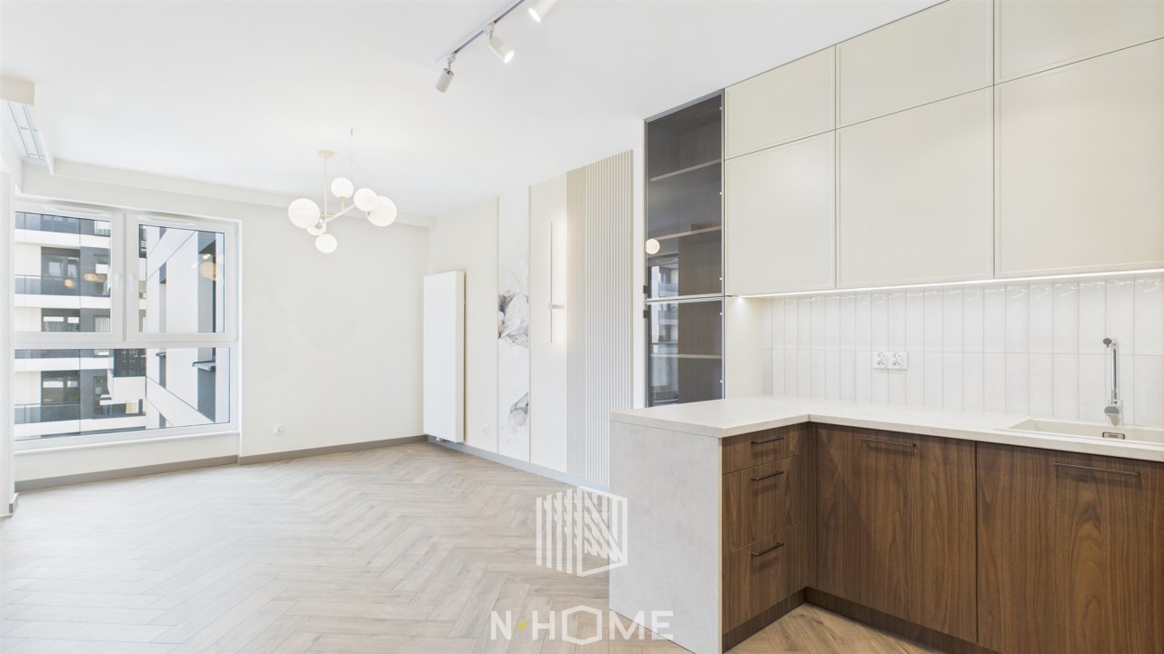 Przestronny salon połączony z aneksem kuchennym z wyjściem na loggie – 23,56 m²