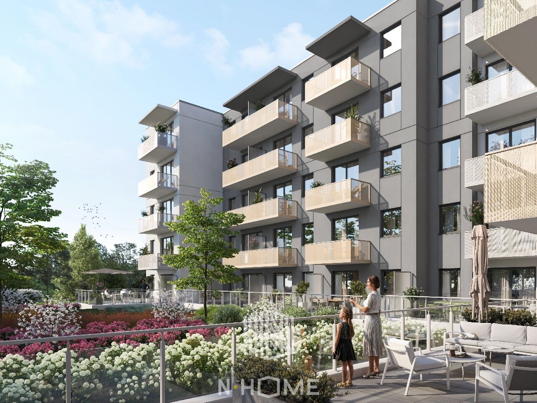 Nowoczesna architektura i wysoki standard budynków – estetyczne części wspólne, trwałe materiały, duże przeszklenia.