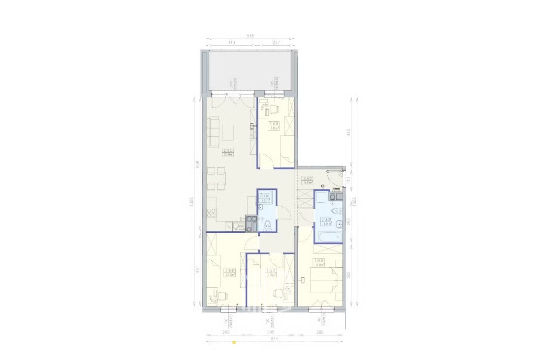 Mieszkanie posiada przemyślany układ, który pozwala na wygodne rozmieszczenie mebli i stref: dziennej, jadalnej oraz wypoczynkowej. Sypialnie są ustawne i funkcjonalne, a duże okna zapewniają dobre doświetlenie.