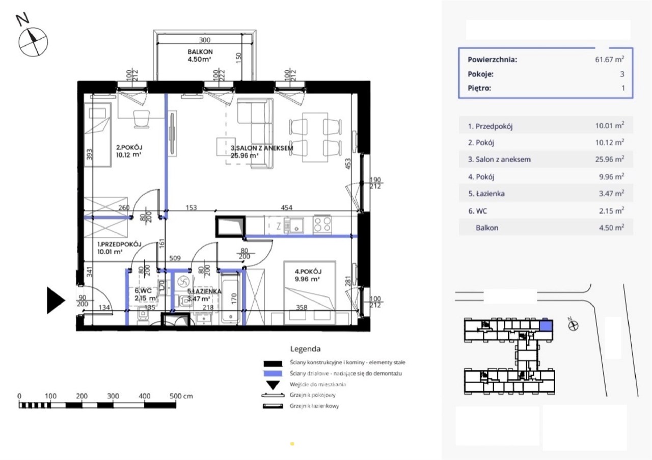 | Powierzchnia użytkowa [m2] | 61,67 m² |