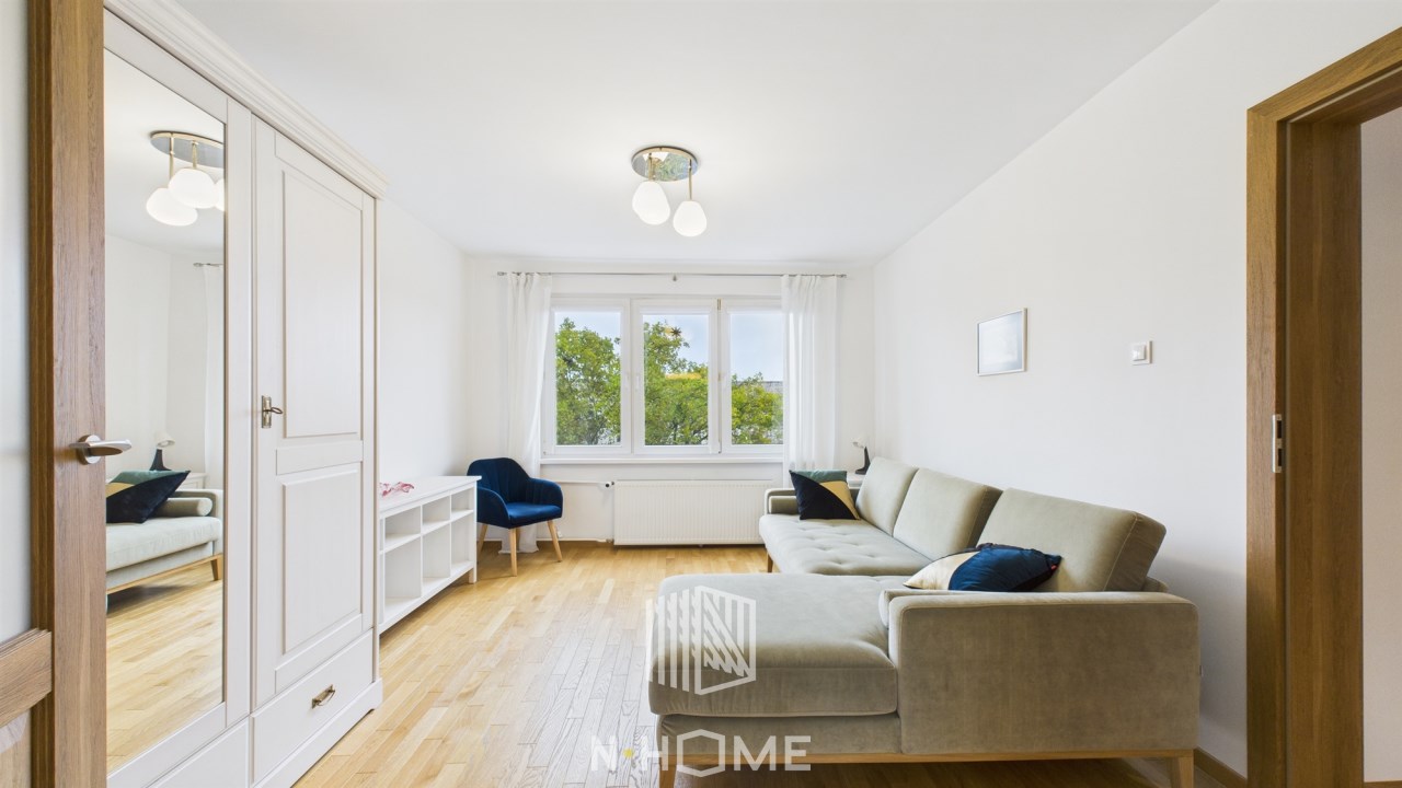 Mieszkanie jest dwustronne, co oznacza, że jest dobrze doświetlone i wentylowane. Okna wychodzą na północ i południe, co zapewnia przyjemną aurę wewnątrz.
