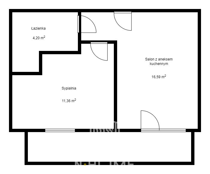 - salon z aneksem kuchennym 16,59 m2